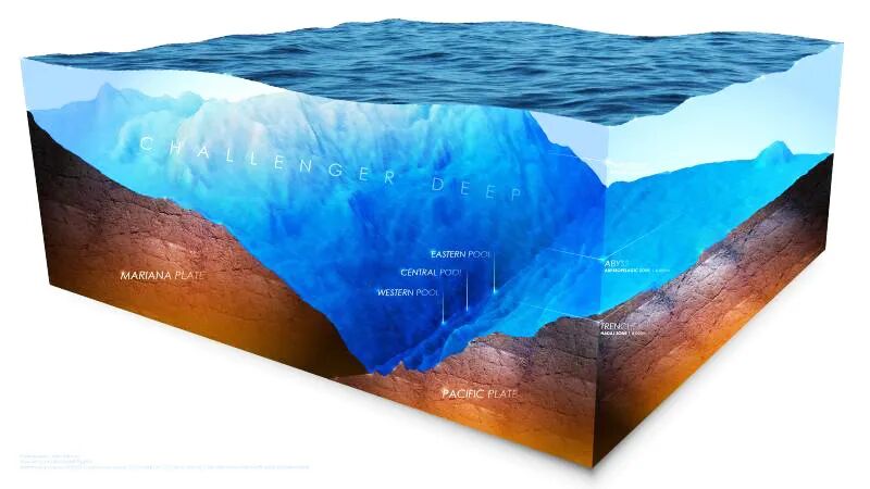 太平洋马里亚纳海沟最深处“挑战者深渊”示意图,图片来源:Bing
