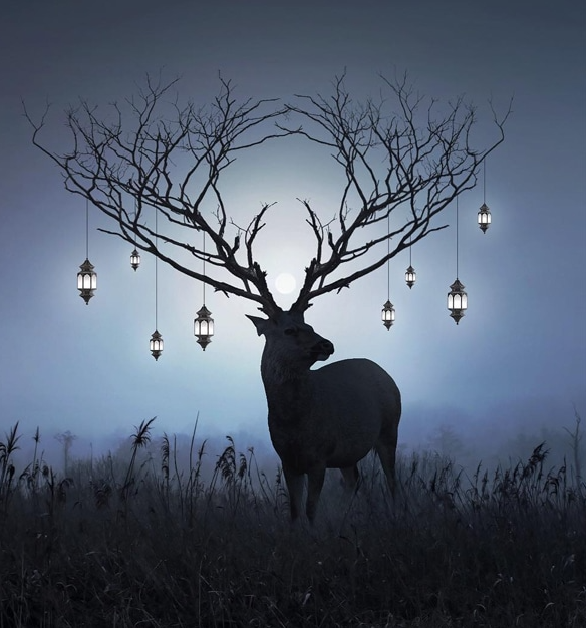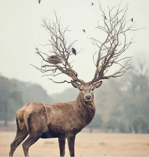 也许,年轻雄鹿也是棕鹿所孕育的后代呢。但是年轻雄鹿的犄角却不是十八枝的,而是十五枝——比棕鹿少三枝。也许,拥有十八枝犄角的珍稀动物已经只剩下了最后一代,而这最后一代——正是棕鹿自己。也许,在层峦叠翠的山林中呼啸而过的年轻一代雄鹿,将逐渐拥有十五枝、十一枝、八枝的犄角……再往后,就只剩下没有犄角的鹿了。一切都有可能。