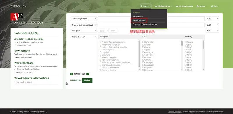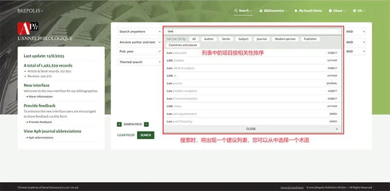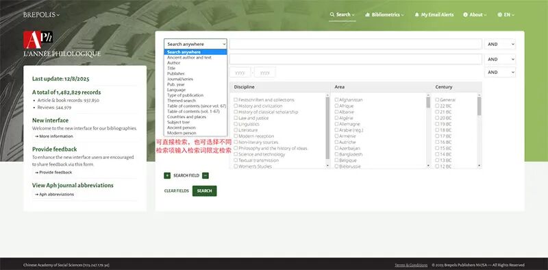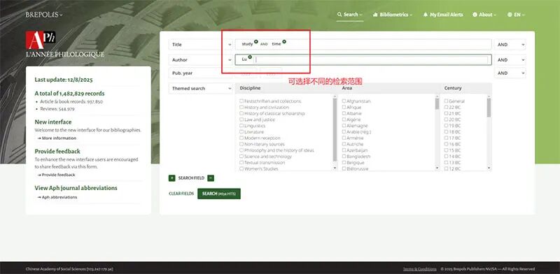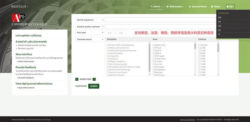 点击文末“阅读原文”,打开“古典学文献年鉴数据库”。