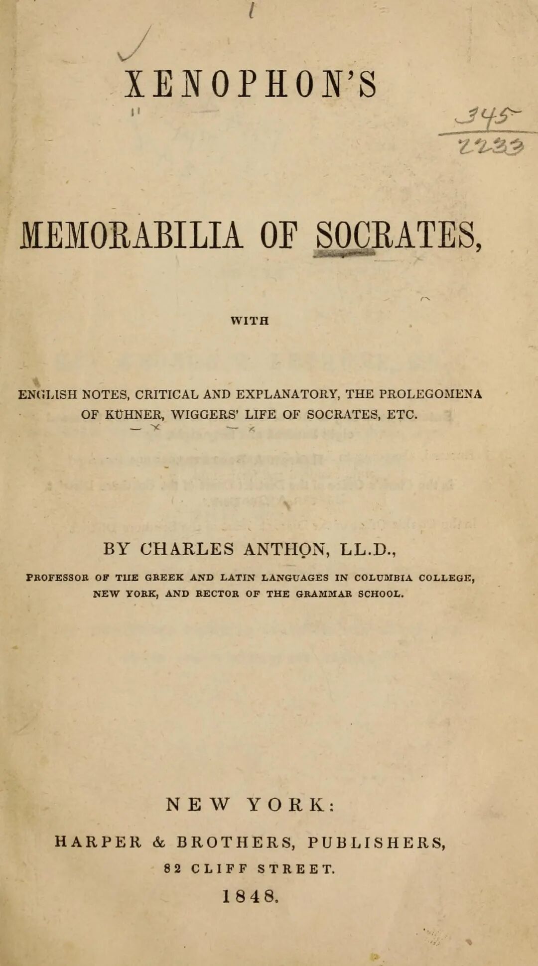 ▲ 色诺芬《回忆苏格拉底》,查尔斯·安顿英译本,1848年