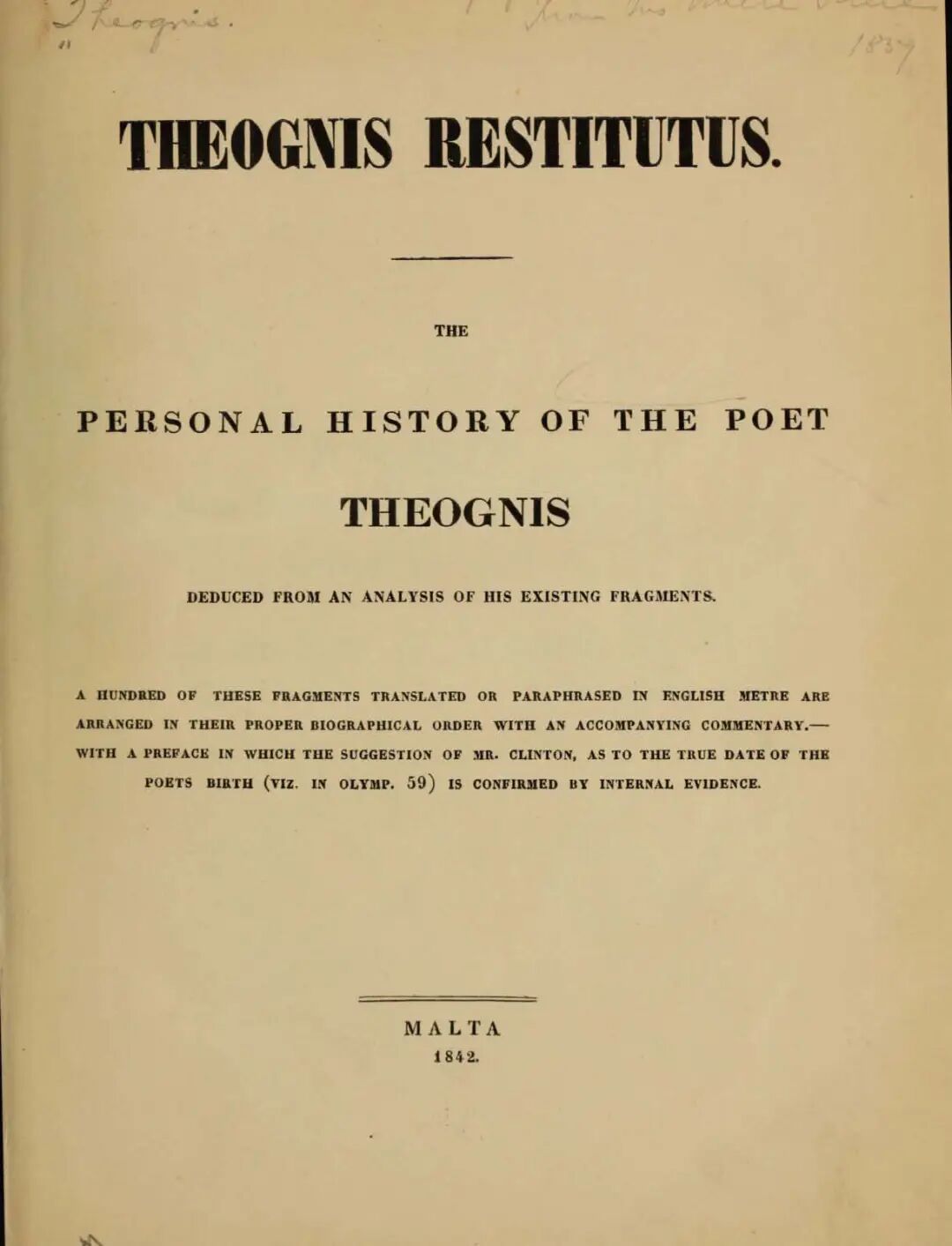 ▲ 《忒奥格尼斯集》复原本,1842年英文版