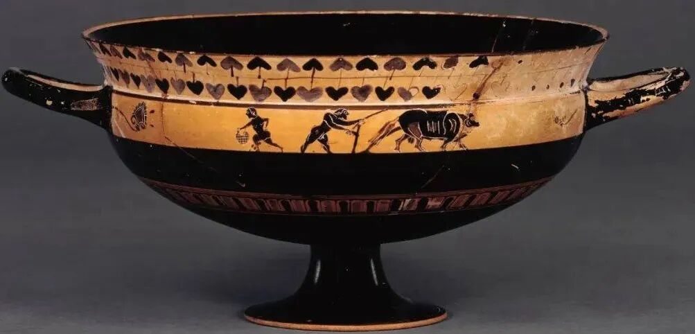 希腊阿提卡黑绘陶酒杯,约公元前550年,大英博物馆 藏